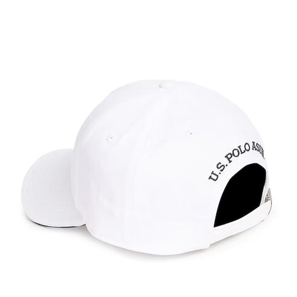 White embroidered baseball cap, has a visor