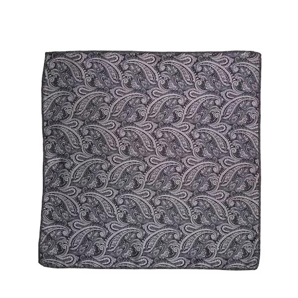 Grey paisley printed pocket square