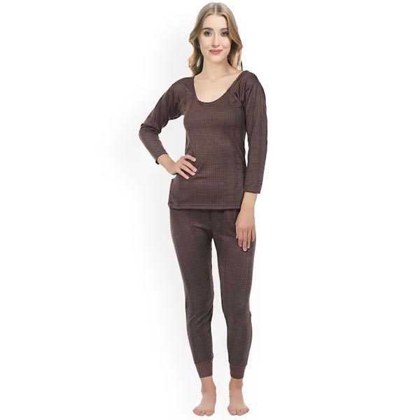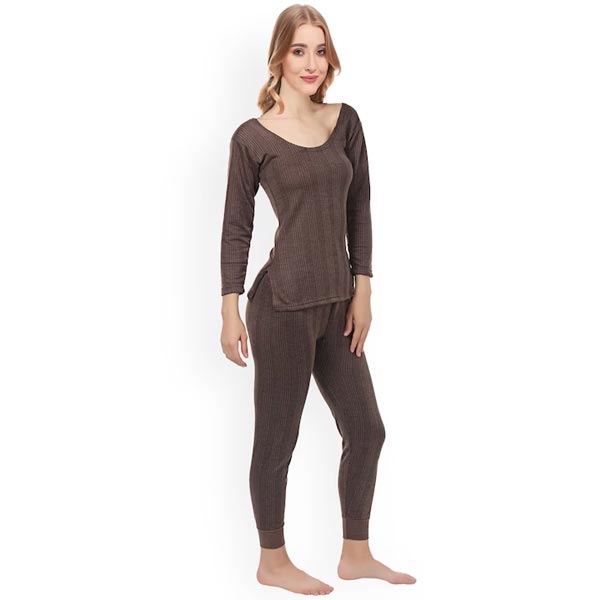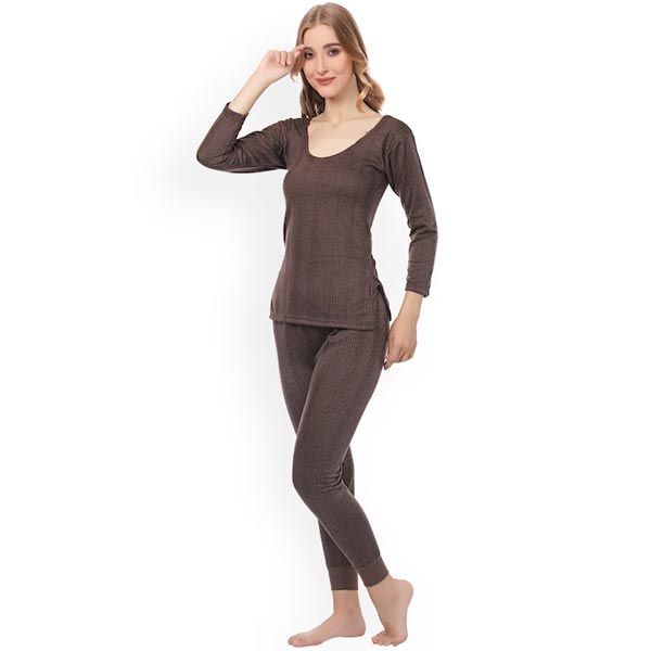 Mustard brown ribbed thermal sets